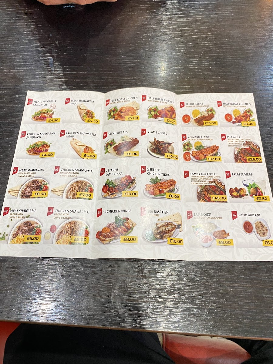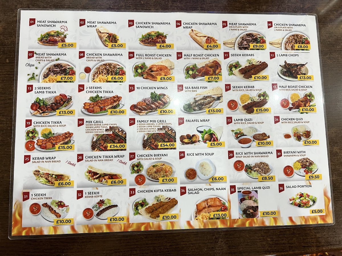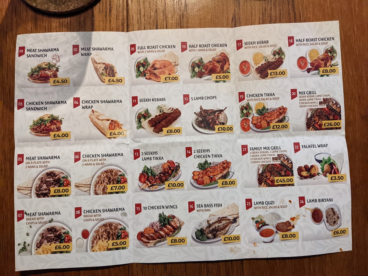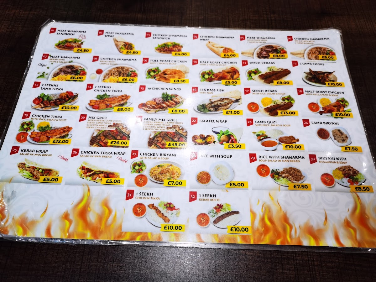 Expect to enjoy staples like the tender lamb shawarma sandwich and chicken tikka, alongside comforting bowls of lentil soup or biryani rice served with shawarma. The Kurdish Mix Grill and Mixed Meat Kebab options highlight the restaurant’s emphasis on well-seasoned, grilled specialties. Freshly baked naan and crispy fries complement many of the plates, adding to the approachable and familiar feel of the menu.