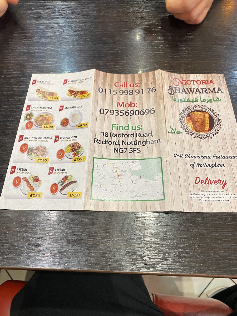 Victoria Shawarma Menu